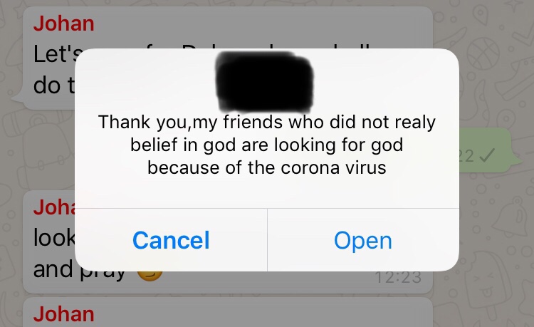 How might we participate in what the Lord is doing? How might we encourage a brother or sister, better see to it that our family is built on a firm foundation, and reach out to a lost friend who has no eternal hope? It’s an exciting time, believer. Why? Because we yet have breath in our lungs and the opportunity to worship our King with life itself. Join me, and pray for revival to come. The screenshot posted above is from a young brother in the Lord here in Belgium, who has been faithful to share with his friends. Though formerly disinterested, his friends have a growing interest in the face of concern. Pray!