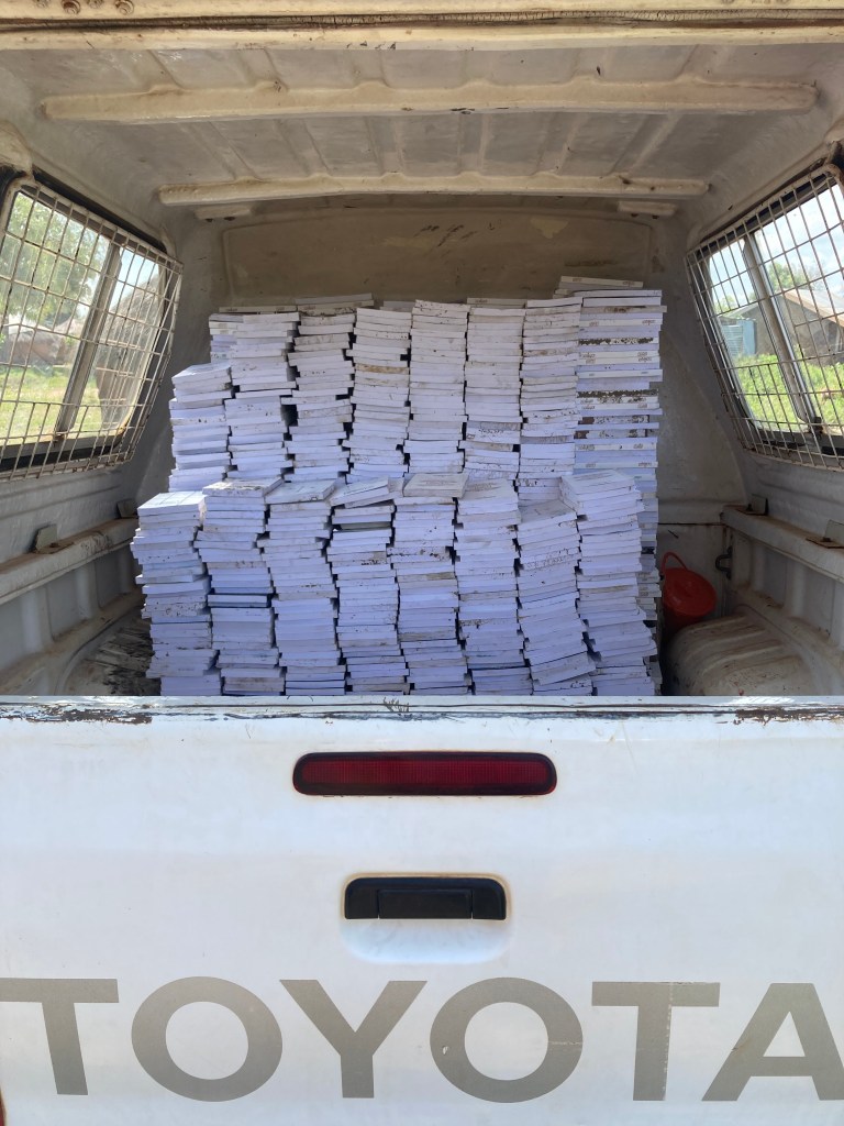These 2,500 New Testaments that were salvaged were trucked back to the town of Arua, cleaned, counted and boxed. Plans were made and carried out for their transport in various directions where they can be read and where believers have been eagerly awaiting them!